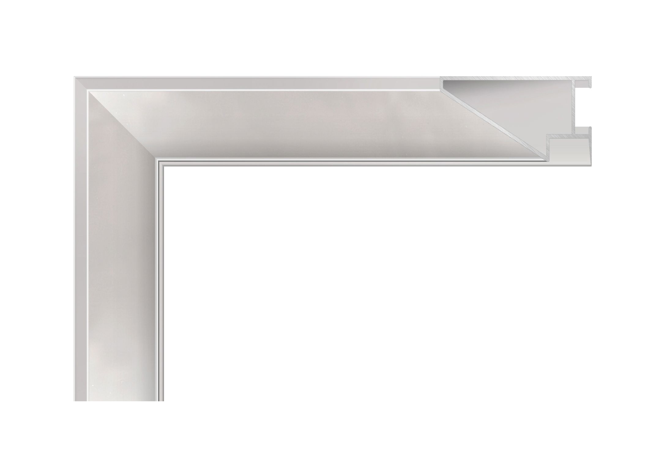 Fabricado en aluminio Nielsen de alta calidad, este marco combina robustez y ligereza. Con un perfil de 54 mm de alto y 22 mm de ancho, proporciona una moldura amplia que crea una frontera visual definida y estilizada, aportando carácter y estructura sin restar protagonismo a la pieza central.
