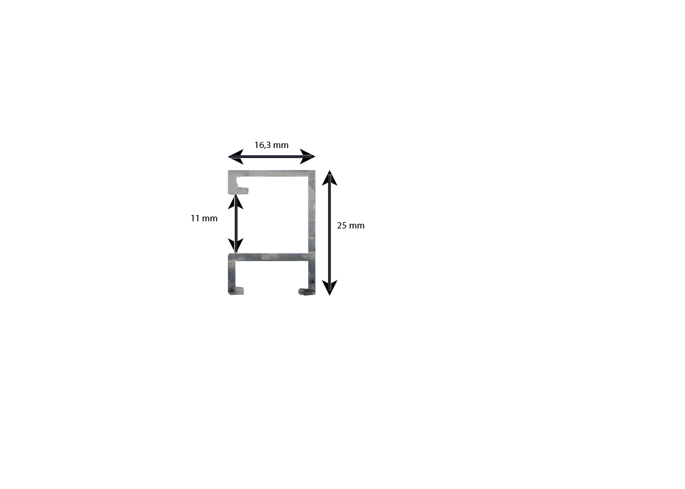 Dimensiones del perfil: 25 mm de alto × 16,3 mm de ancho