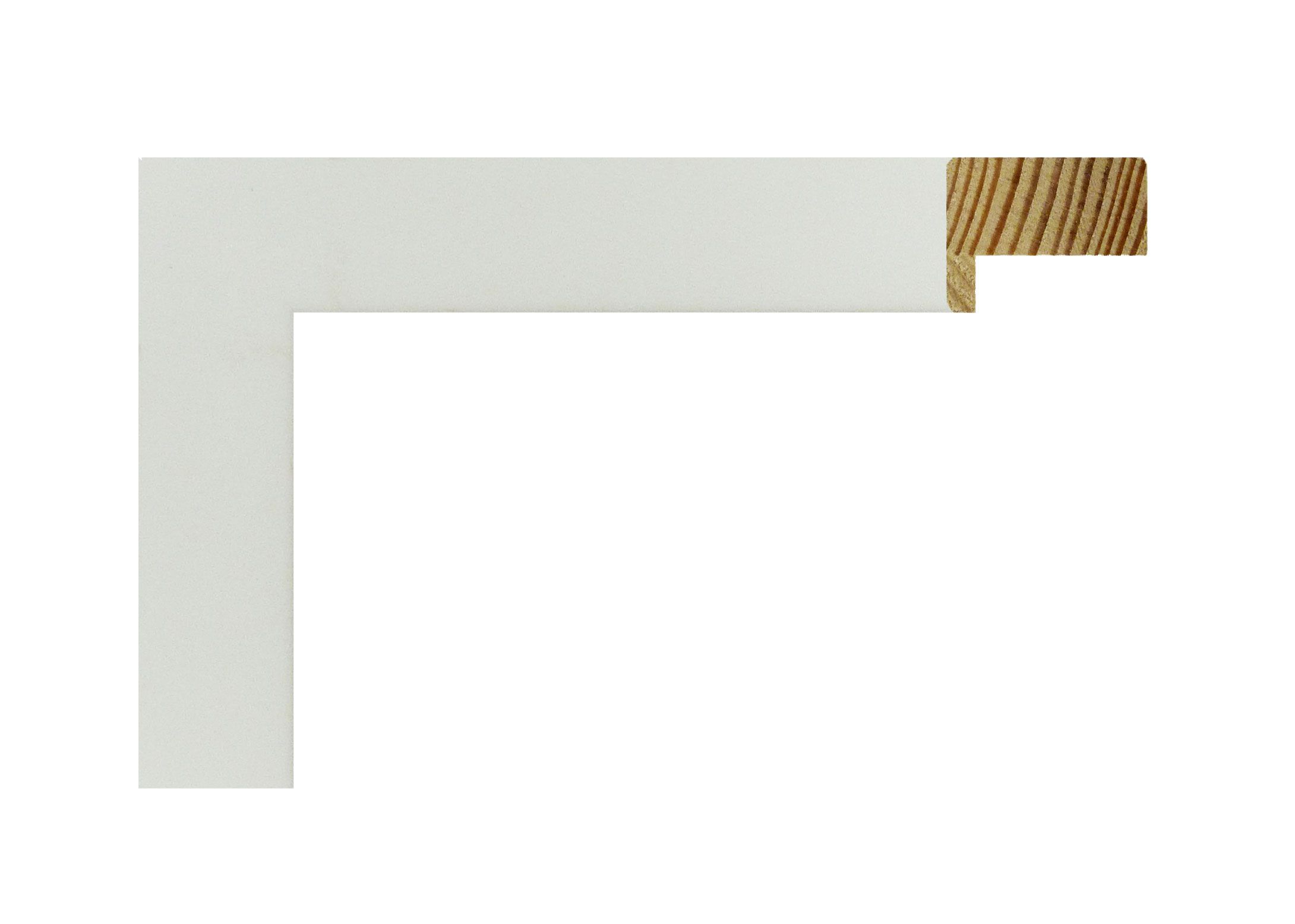 Su acabado blanco lacado y su forma profunda lo hacen especialmente adecuado para ambientes contemporáneos y obras que buscan un marco sobrio y moderno.