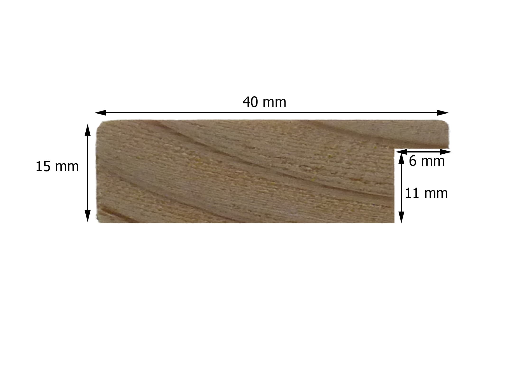 Tiene un perfil de 40 mm de ancho y 15 mm de alto, con textura visible.