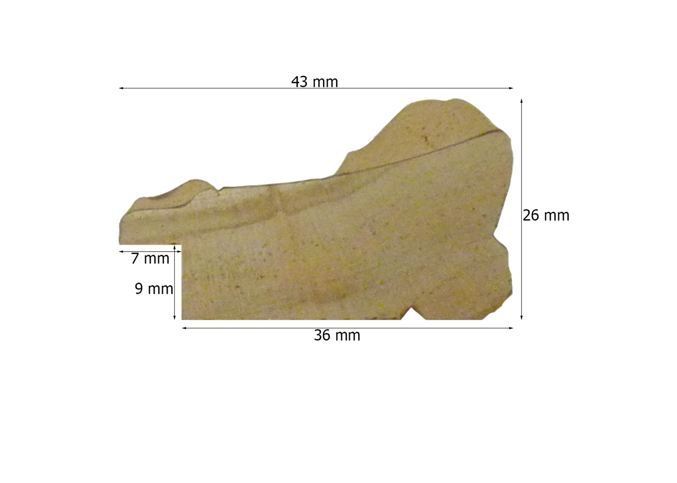 Con sus dimensiones, esta moldura logra un equilibrio entre impacto y contención. El ancho de 43 mm da un contorno marcado al objeto enmarcado, ideal para obras de formato medio a grande, mientras que la altura de 26 mm otorga rigidez suficiente para soportar soportes como lienzos montados, paneles rígidos o soportes de cierto grosor, con estabilidad y sin deformaciones.