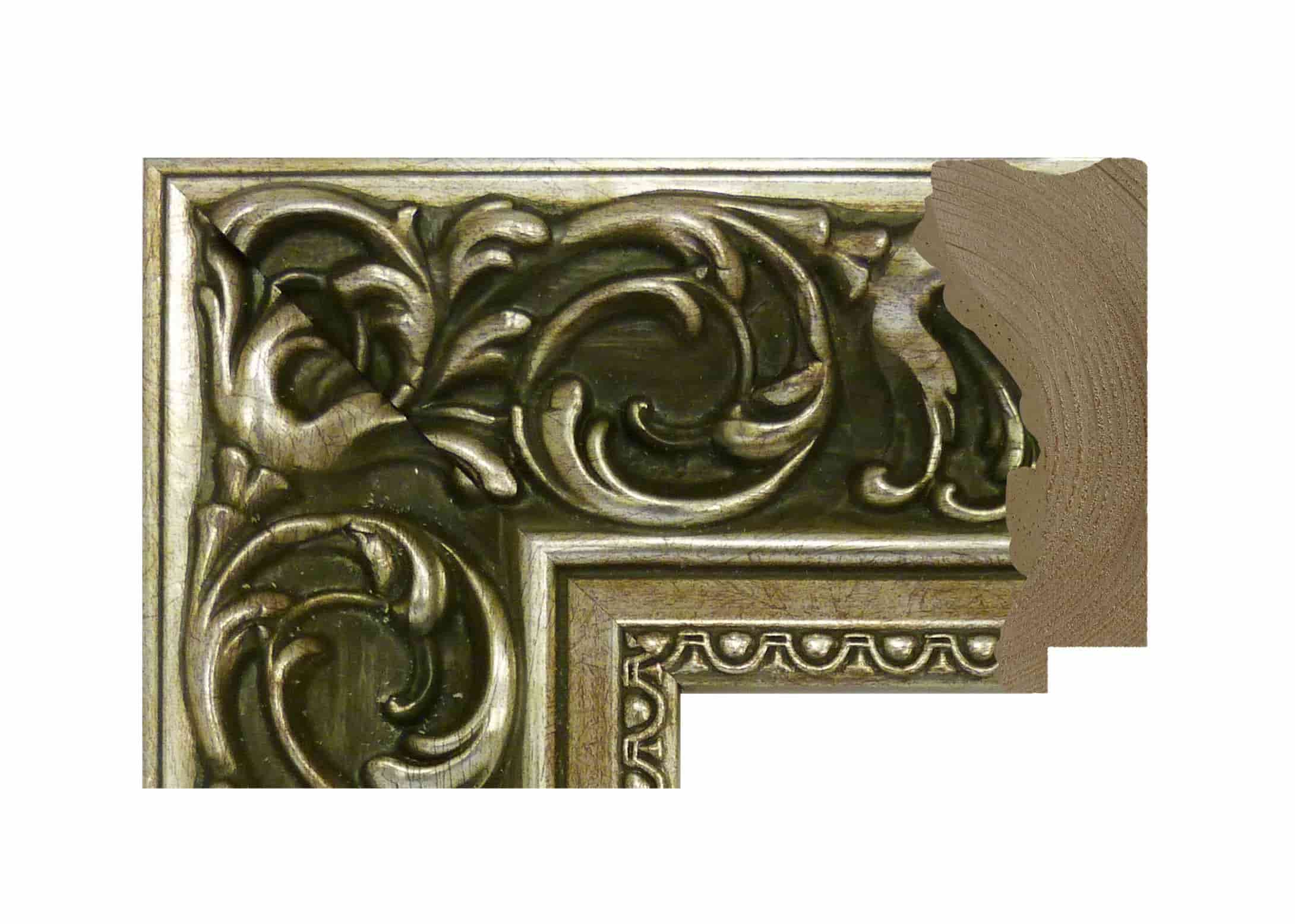 La moldura en barra de madera de pino finger en acabado barroco plata, referencia 900/098, con un perfil de 90 × 36 mm, es una opción decorativa de gran presencia que combina la tradición ornamental con una estética metálica elegante. Su acabado en plata con detalles de estilo barroco aporta un marco visualmente rico, equilibrado y con carácter artístico, ideal para realzar obras pictóricas, ilustraciones, fotografías o láminas decorativas que requieren un marco con presencia expresiva.