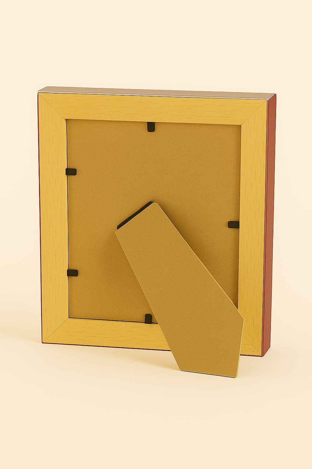Este modelo está concebido exclusivamente para sobremesa. Incluye una trasera de MDF crudo con pie integrado, lo que permite situarlo con firmeza sobre mesas, estanterías o escritorios, tanto en orientación vertical como horizontal. Además, viene con metacrilato protector de doble cara, que ofrece una opción brillante para intensificar colores o una cara mate para minimizar reflejos, adaptándose según la iluminación del espacio.