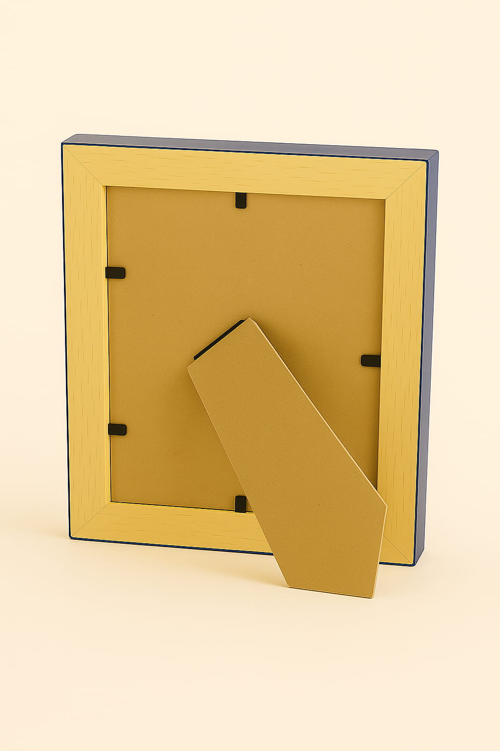 En la parte trasera, el portafoto dispone de un pie de MDF crudo, pensado para uso en sobremesa. Este modelo no incluye sistema de colgado, por lo que se recomienda colocarlo sobre mesas, aparadores, estanterías o escritorios. El diseño permite orientarlo tanto en posición vertical como horizontal, adaptándose a la disposición de la obra o fotografía.