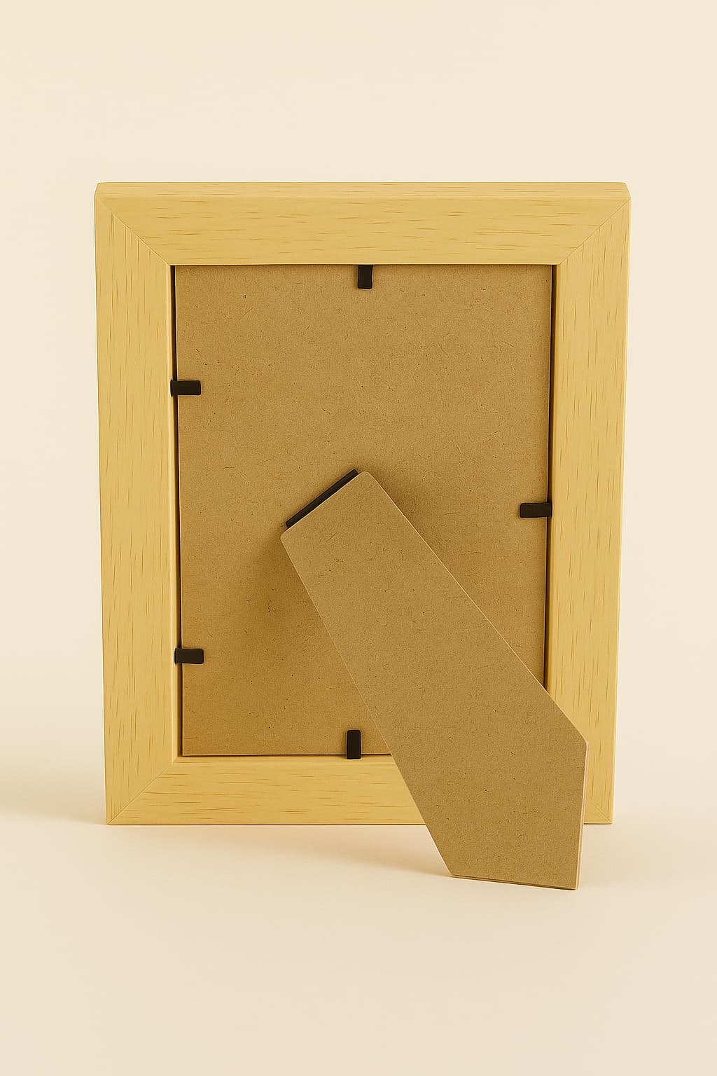 La parte trasera dispone de un pie de MDF crudo, diseñado exclusivamente para uso en sobremesa, por lo que este modelo no está concebido para colgarse en pared. Es ideal para colocarse sobre mesas, escritorios, estanterías o aparadores, aportando un toque decorativo desde superficies horizontales. Además, permite su colocación tanto en posición vertical como horizontal, adaptándose al formato de la obra o a la composición visual que desees mostrar.